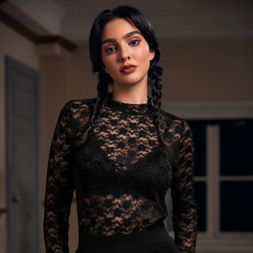 The Timeless Twilight Era Long Sleeve Top is a perfect fit for a mysterious look and style. It is a timeless design with a spooky look. The deep black shade gives off those subtle witchy vibes without wearing the witch costume.
