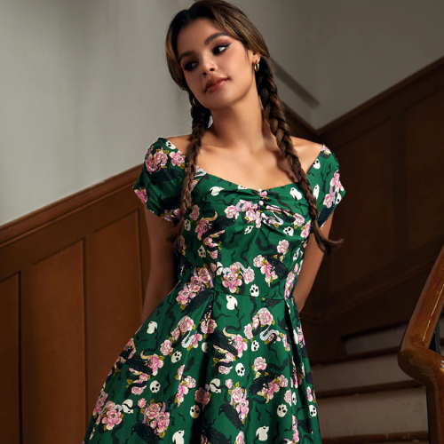 The pumpkins, bats, and snake prints give the coolest and mysterious look. I have also mentioned how to style these dresses for different vibes. Whether it's night or evening dates. ModCloth is the ideal place for women's clothing. The spooky design for the autumn nights.