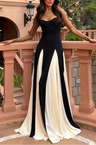 Block Swing Maxi Party Dress